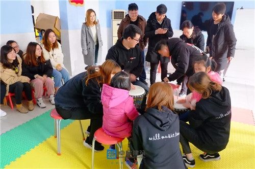 2. 孩子們不善溝通,但是當(dāng)與這溫馨和諧的氛圍相融合的時(shí)候,他們露出了燦爛的笑容。我們伴隨著美妙的音樂一起鼓掌、一起歡笑。