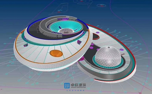 上海天文館建筑結(jié)構(gòu)復(fù)雜,而且在形態(tài)上還集大懸挑、大跨度、大開洞、不規(guī)則曲面等于一體,屬于在形態(tài)、材料和體系上均特別不規(guī)則的結(jié)構(gòu)。同時,根據(jù)建筑設(shè)計理念的要求,結(jié)構(gòu)各個部位均有其特殊之處,如倒轉(zhuǎn)穹頂、懸浮球體、圓洞天窗等,以展現(xiàn)建筑結(jié)構(gòu)與天文常識之間的完美統(tǒng)一。這些大大增加了產(chǎn)品制作及安裝難度。產(chǎn)品加工方式以個性化定制為特點,采用雙曲造型實現(xiàn)自然流暢的曲面視覺效果;為減少拼接,將單塊產(chǎn)品尺寸進行放大,同時為保證產(chǎn)品精度,卓歐對每一件產(chǎn)品都進行嚴格把關(guān),使產(chǎn)品接縫與轉(zhuǎn)折處實現(xiàn)自然過渡,讓建筑以優(yōu)美的自然形態(tài)呈現(xiàn)。